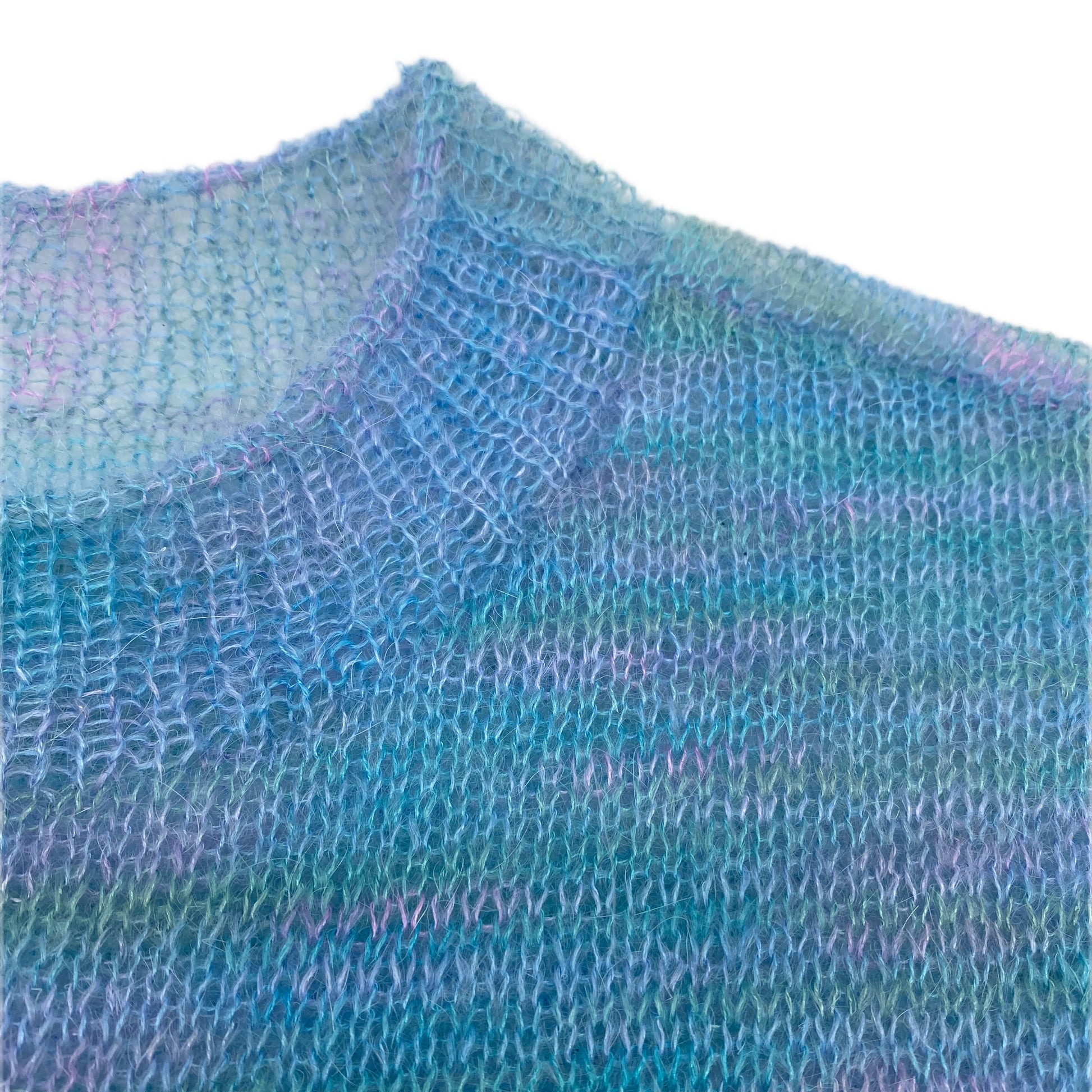 Material: 75% mohair, 25% silk. This pullover is knitted from hand-dyed wool. This makes it truly unique. Not only because of the handcrafting, but also because the yarn itself is of a unique quality.