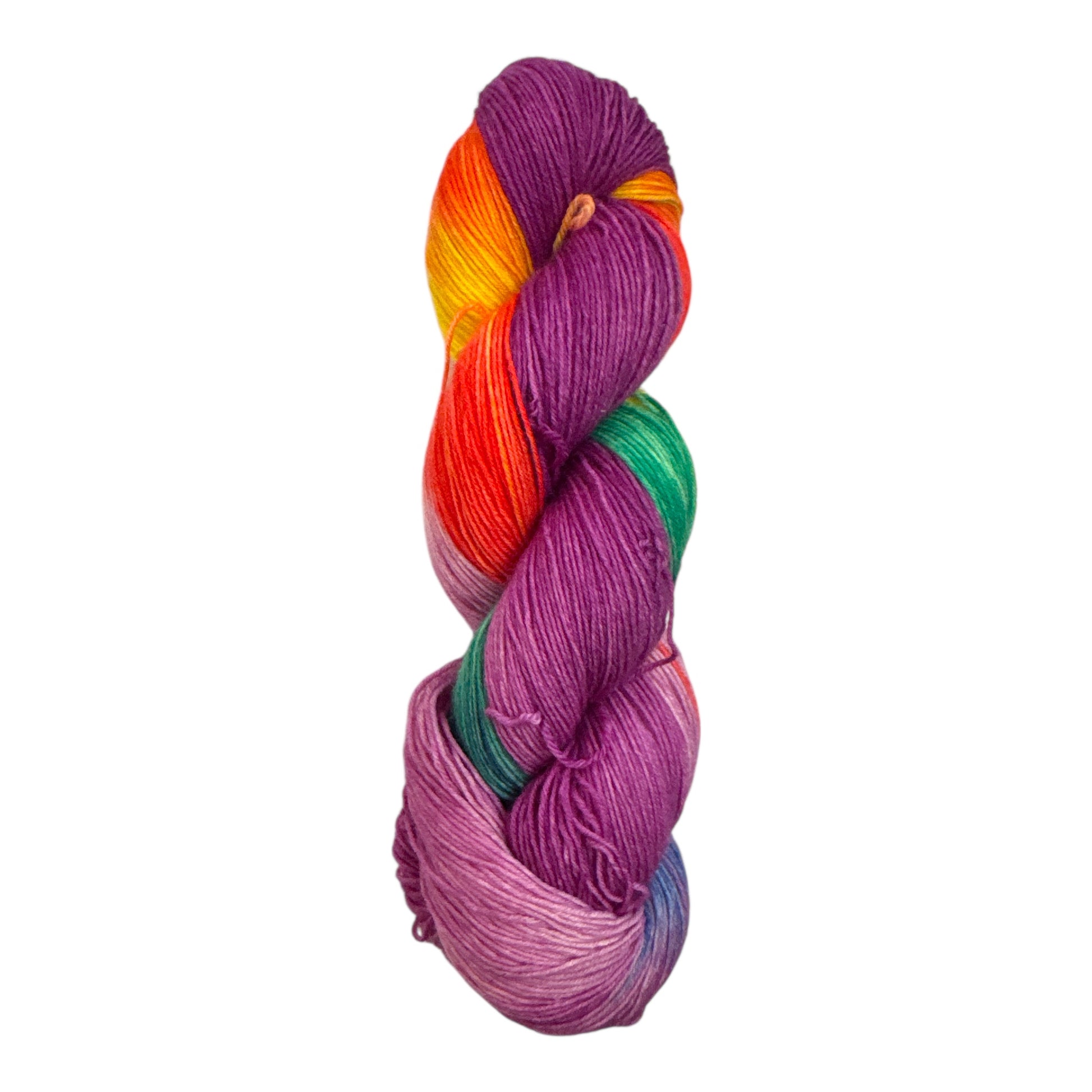 A classic is back—in all the colors of the rainbow! Our "Rainbow" sock yarn was hand-dyed especially for Pride Month and is only available in June. This soft, durable, 4-ply superwash yarn is perfect for socks, scarves, or colorful accessories.