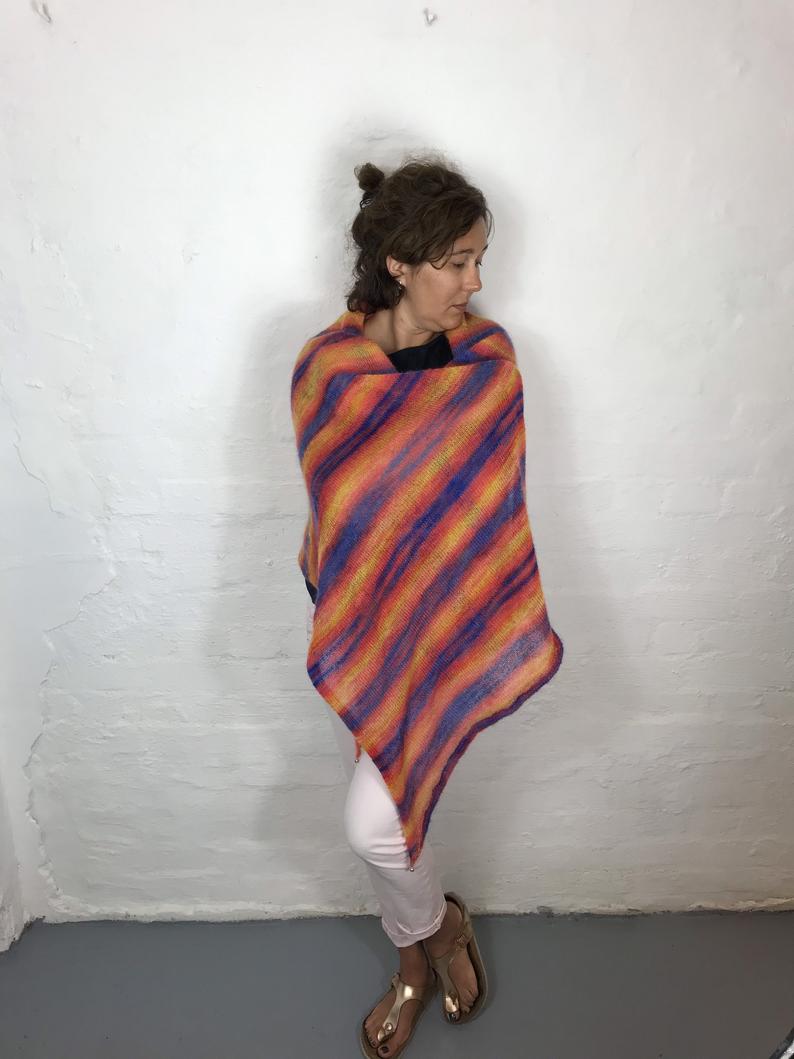 The large and super soft shawl is knitted from the finest kid mohair.