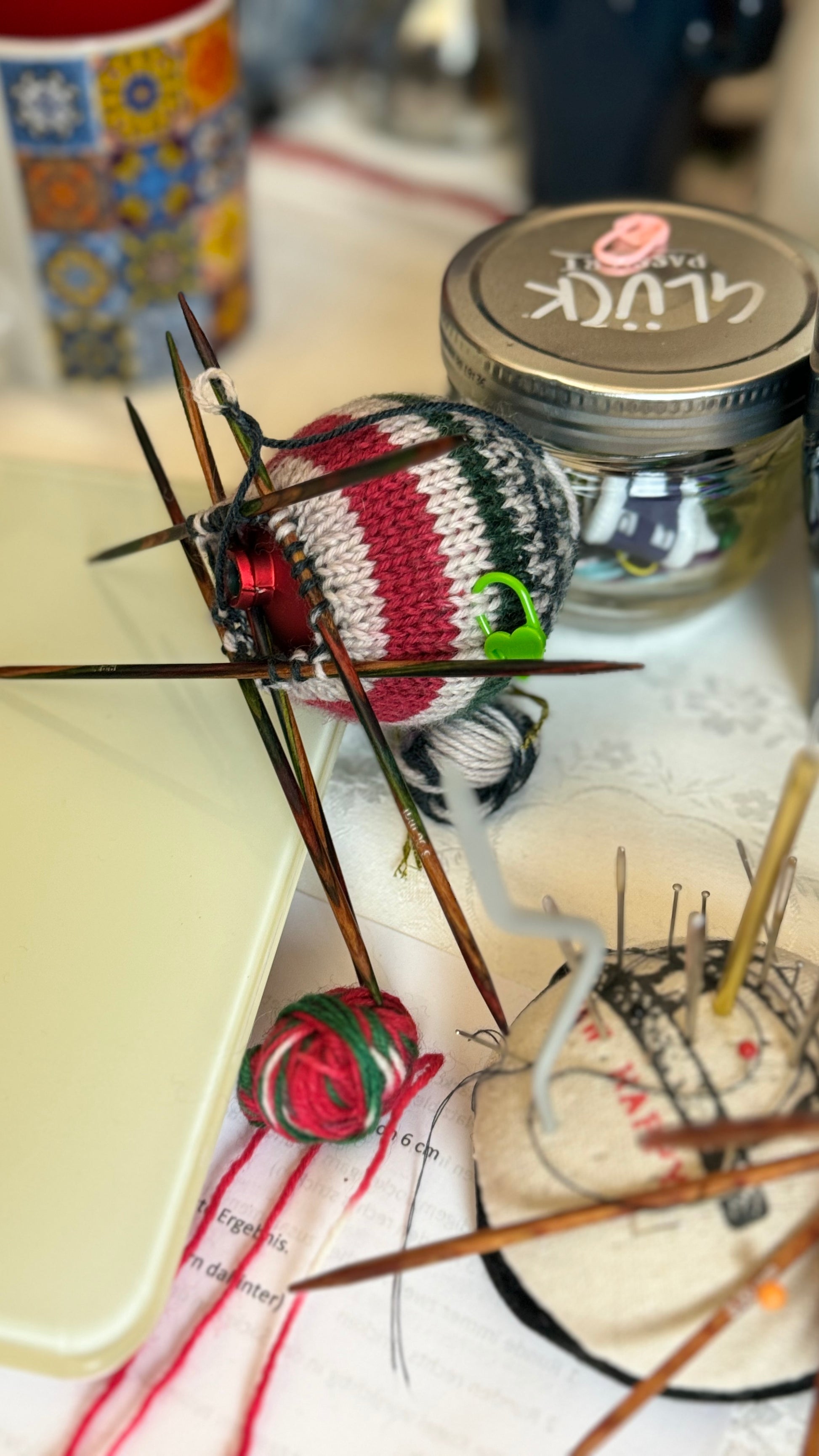 Tauche ein in die vorweihnachtliche Stimmung und werde kreativ! Unter der Leitung von Karin Küster stricken wir in diesem besonderen Workshop aus Wollresten festliche Hüllen für alte Weihnachtskugeln. Dieses nachhaltige Projekt bringt nicht nur Spaß, sondern verleiht deinem Weihnachtsbaum eine ganz persönliche Note. Ein echtes „Must-Have“ für jedes Strickherz! 🎄✨