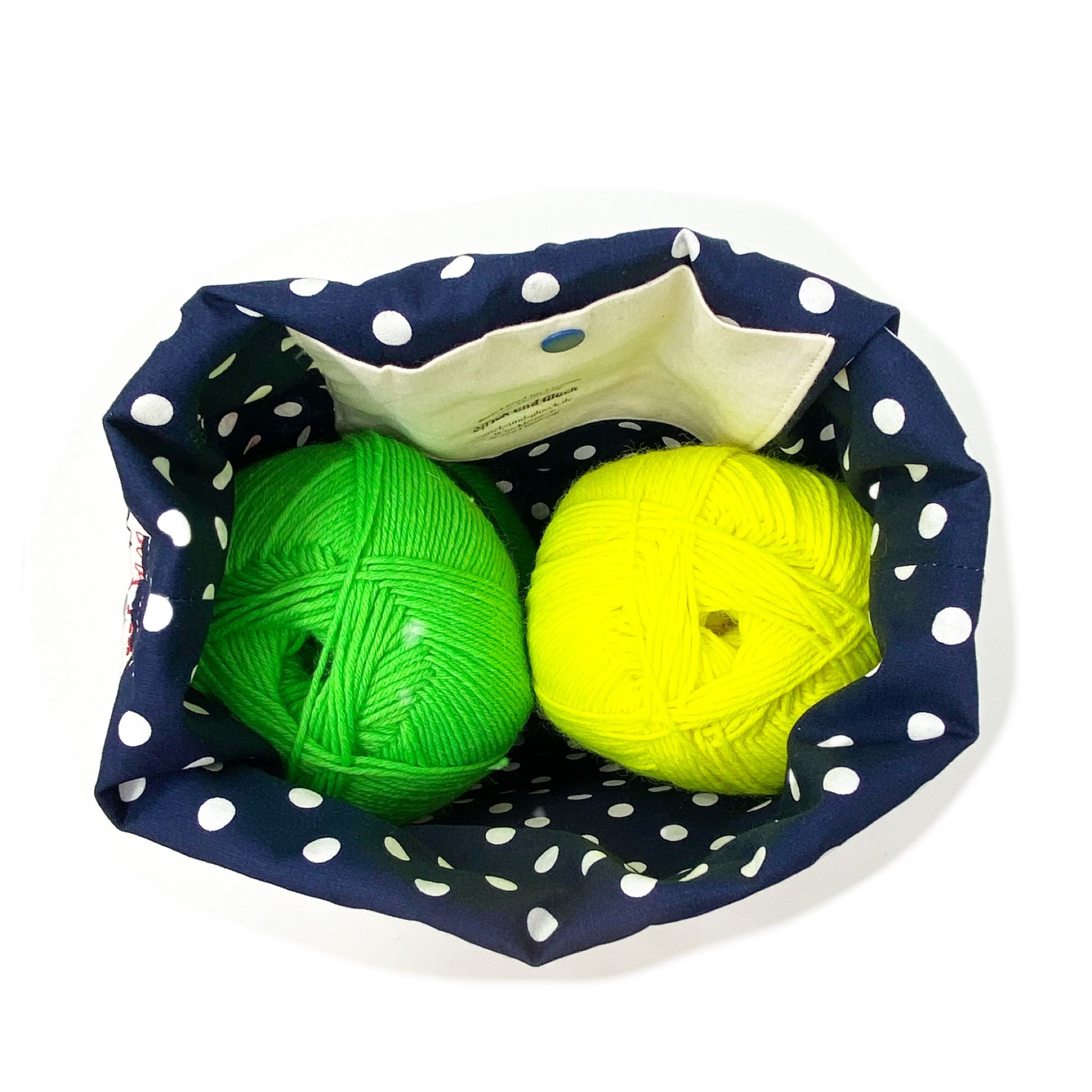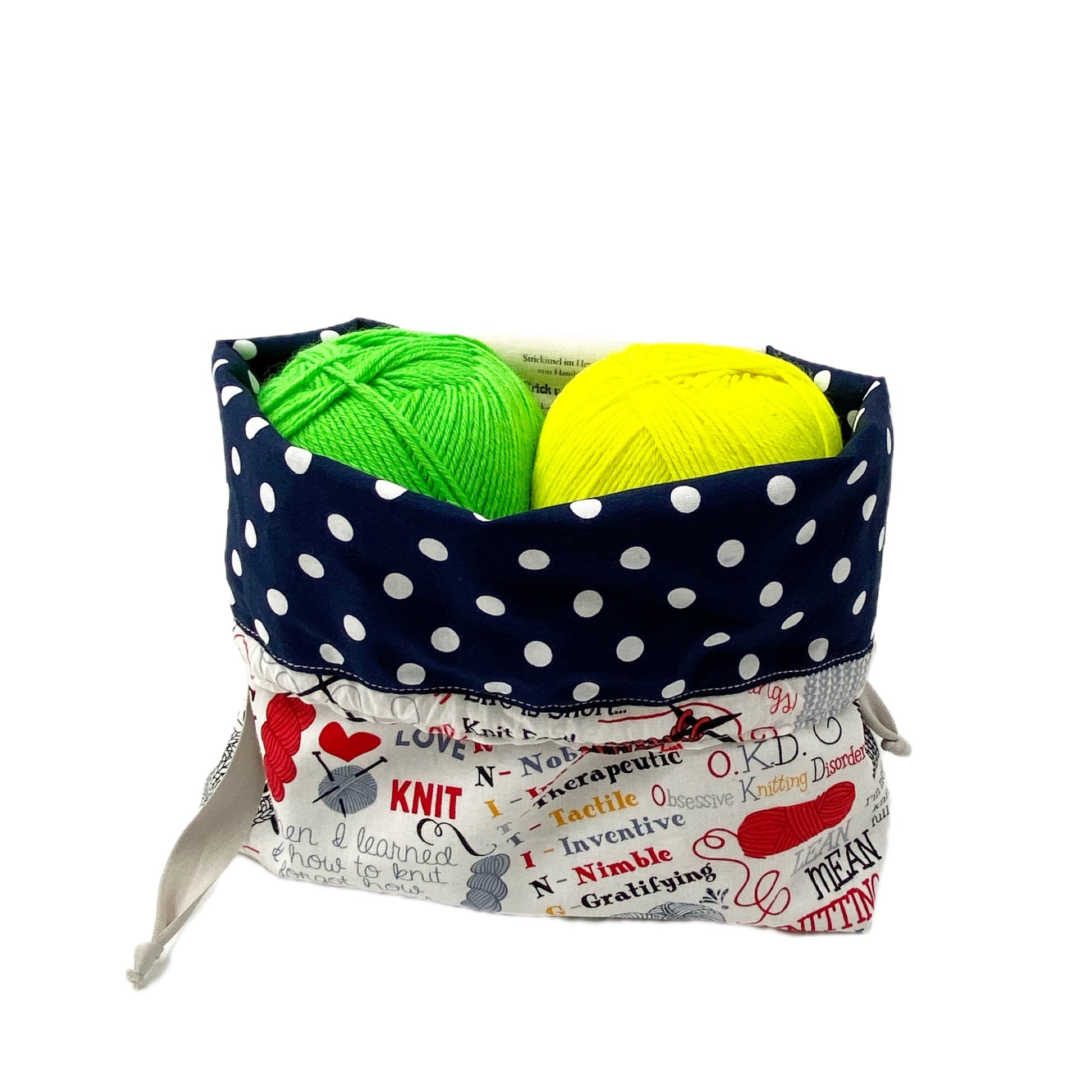 Der Projektbeutel sorgt für Ordnung bei Strick- und/ oder Häkelprojekten. Eine Handarbeitstasche für unterwegs ist besonders wichtig. 1 - 2 Knäuel Wolle und das Strickzeug findet bequem Platz darin . Die Hobbytasche ist gut geeignet für kleine Projekte wie Socken, Mützen, Stülpen, Kindersachen oder ähnliches.